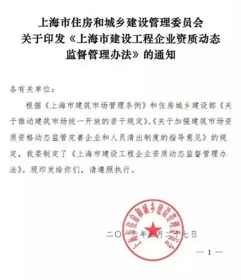 5月27日,上海市住房和城鄉建設管理委員會頒布《上海市建設工程企業資質動態監督管理辦法》,該《辦法》有幾點內容需要大家特別關注。