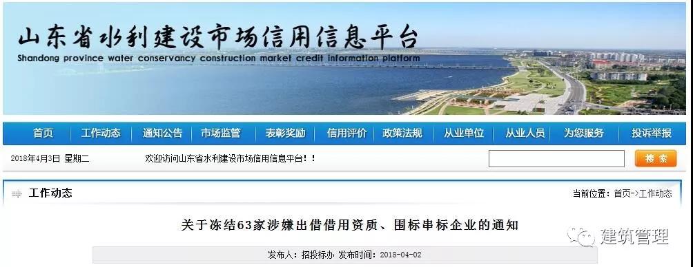 近日,山東省住建廳發現63家企業在水利建設市場招標投標活動中涉嫌出借借用資質、圍標串標。